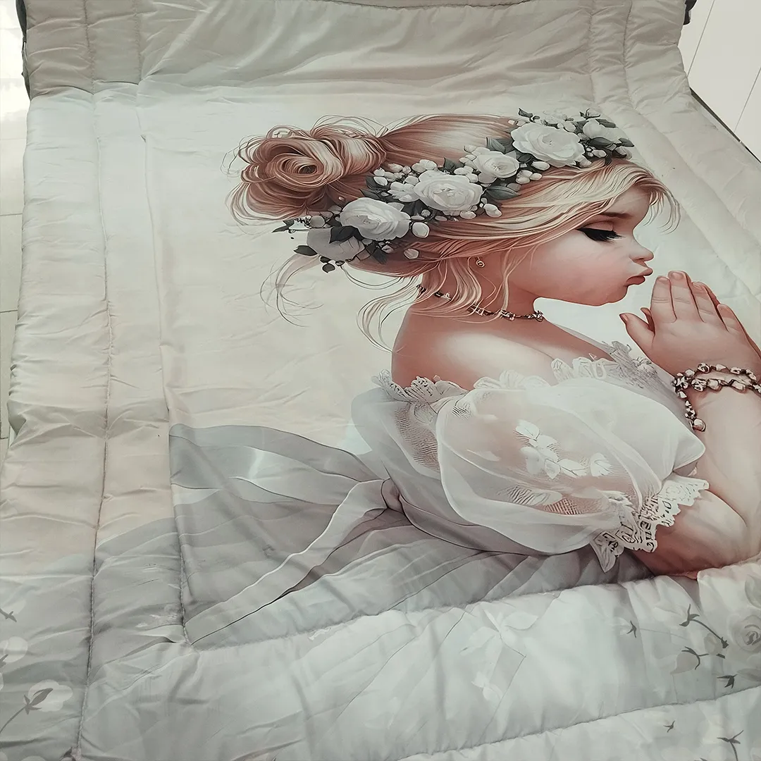 - 1 عدد لحاف سه بعدی: لحافی نرم، گرم و سبک با طرح اصلی دختر و دسته گل، که پوششی ایدهآل برای خوابی عمیق و آرامشبخش فراهم میکند.