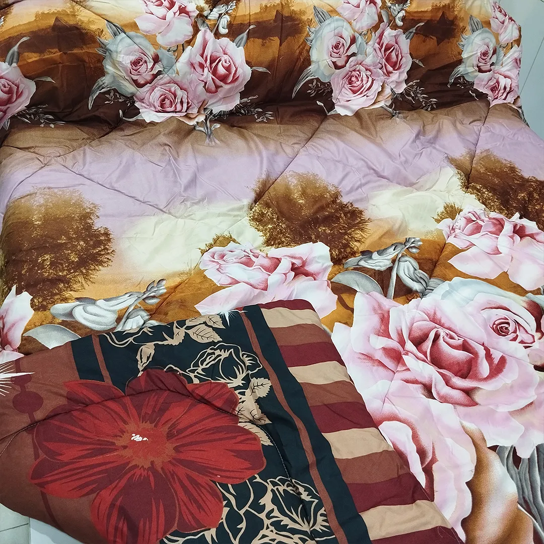 • لحاف با الیاف 350 گرمی: لحاف سبک و نرم که گرمای مناسبی را در طول شب فراهم می‌کند.